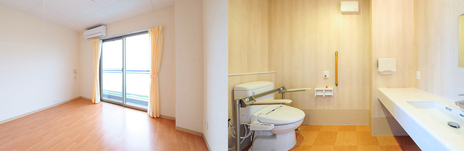 暮しやすさで全国トップクラスの石川県野々市市。ひなの家 彩~いろどり~は、野々市市の閑静な住宅街の一角にあり、3タイプのお部屋は48部屋あります。 入浴設備が充実しているのも特長です。